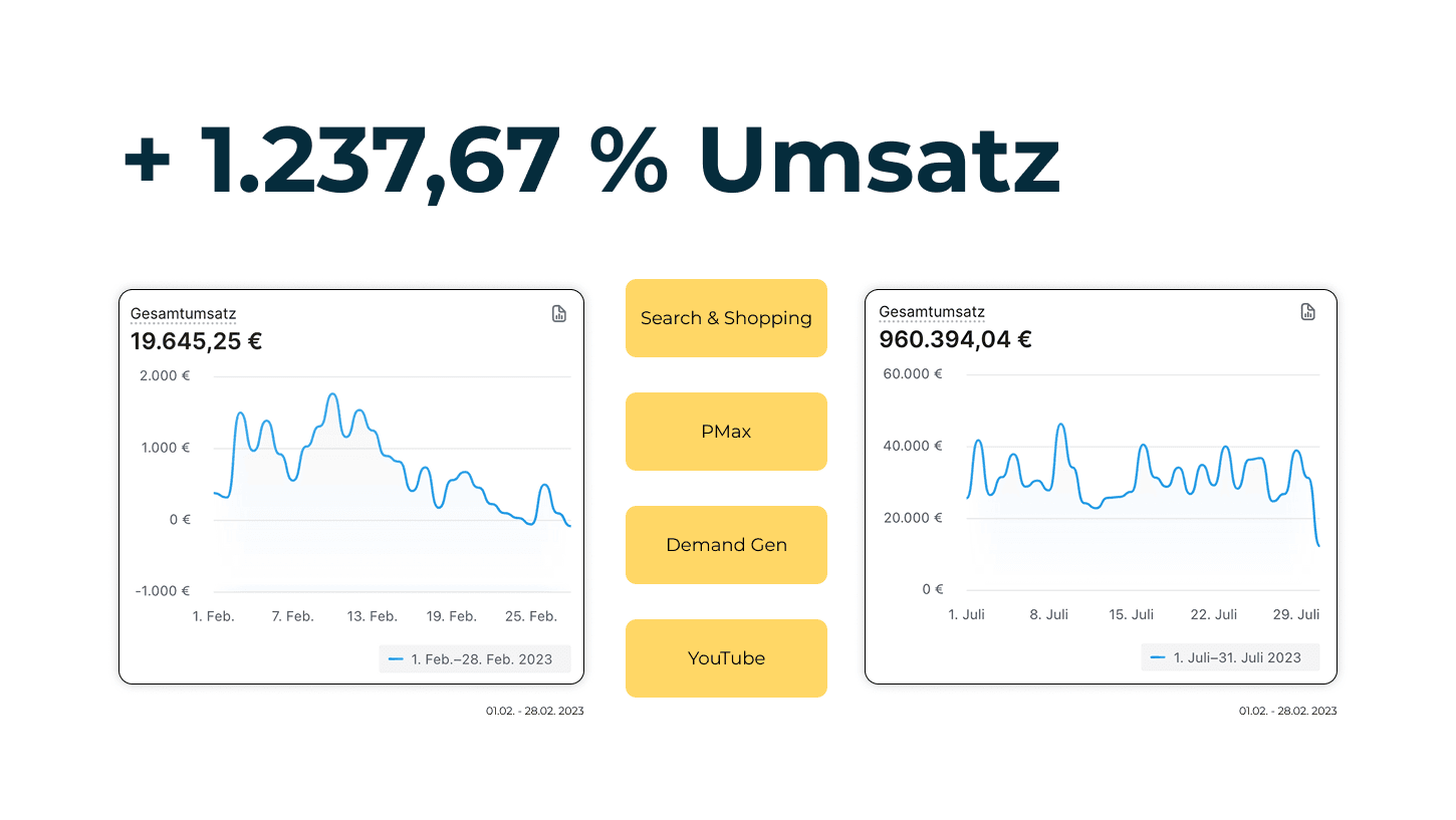 Nachhaltige Skalierung über den gesamten Funnel mit Google Ads, Demand Gen, YouTube und high-end Creative-Production.